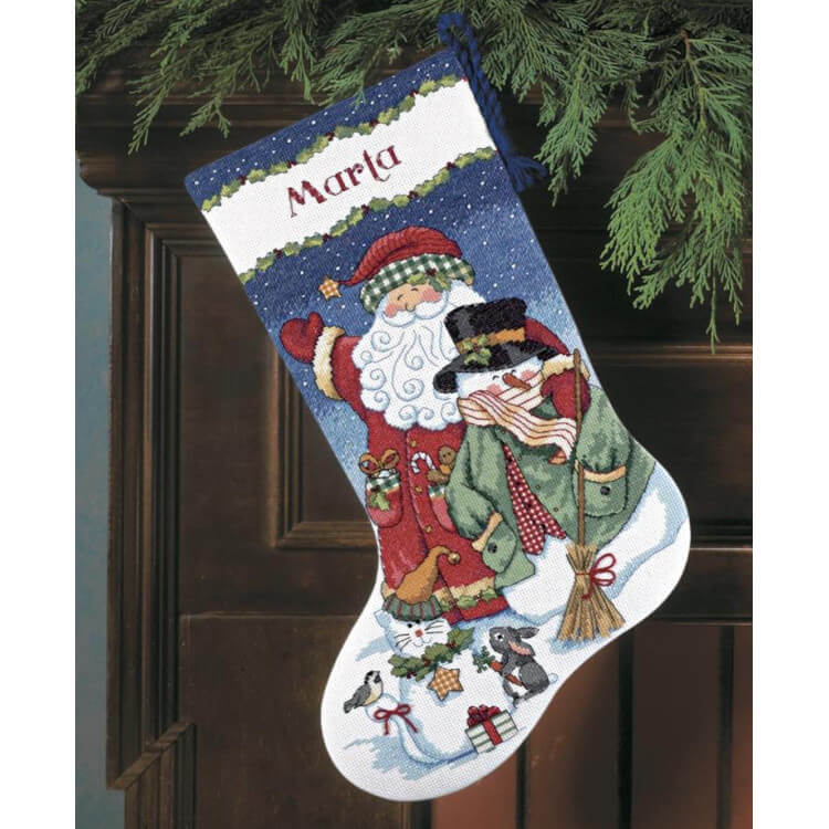 Broderipakke Julestrømpe "Snowman and Santa"