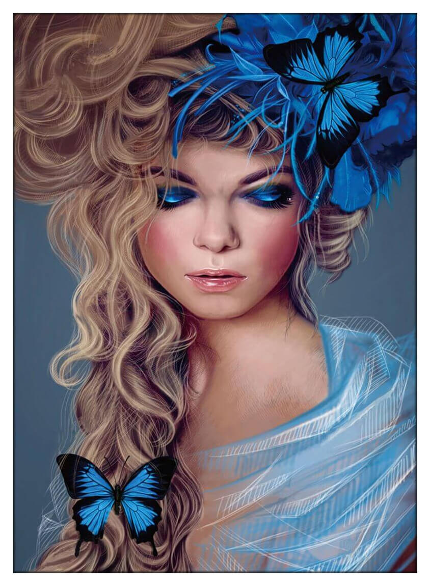 Diamond Painting på ramme "Girl with Butterflies", 40 x 30 cm