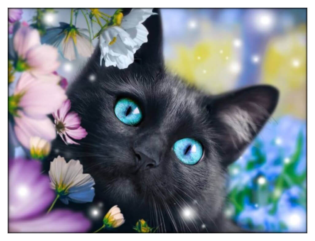 Diamond Painting "Black cat in the flowers", 40 x 30 cm