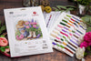 Broderisett inneholder : mønster, Zweigart Aida stoff 16 ct. , "Luca S" mouline garn, nål, nålitreder og instruksjoner.
