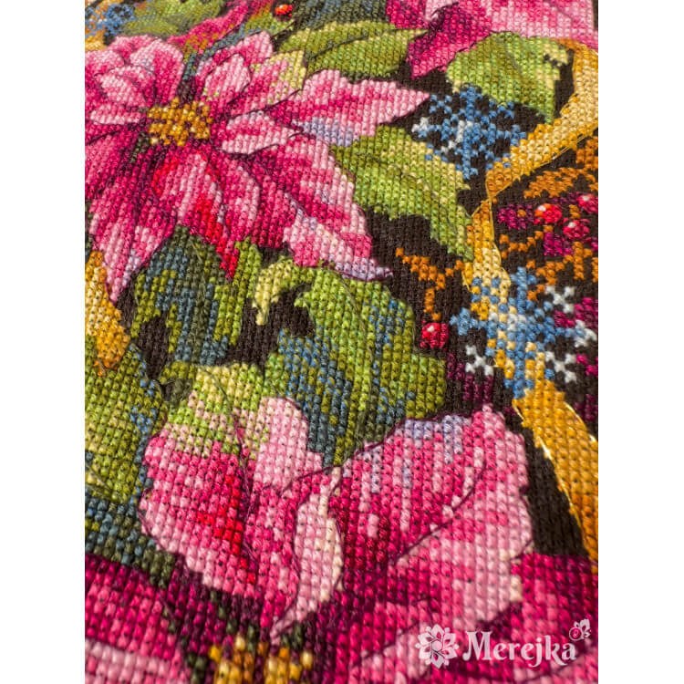 Broderisett fra "Merejka" inneholder materialer av høy kvalitet : DMC mouline garn, JohnJames nåler og Zweigart broderistoff.