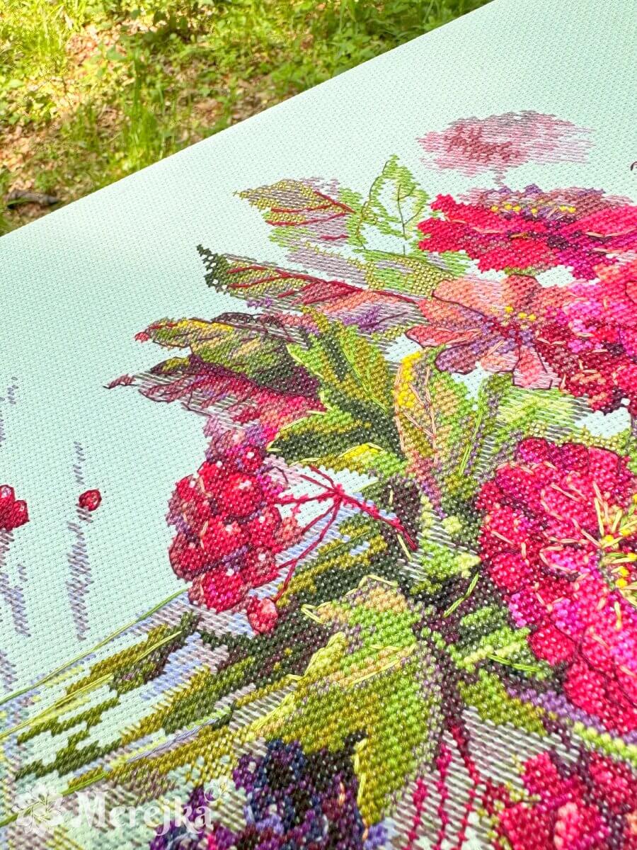 Broderisett fra "Merejka" inneholder materialer av høy kvalitet : DMC mouline garn, JohnJames nåler og Zweigart broderistoff.