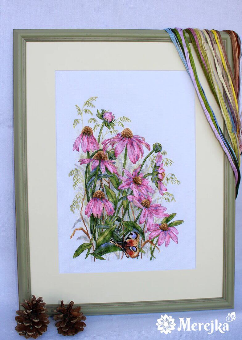 Broderisett fra "Merejka" inneholder materialer av høy kvalitet : DMC mouline garn, JohnJames nåler og Zweigart broderistoff.