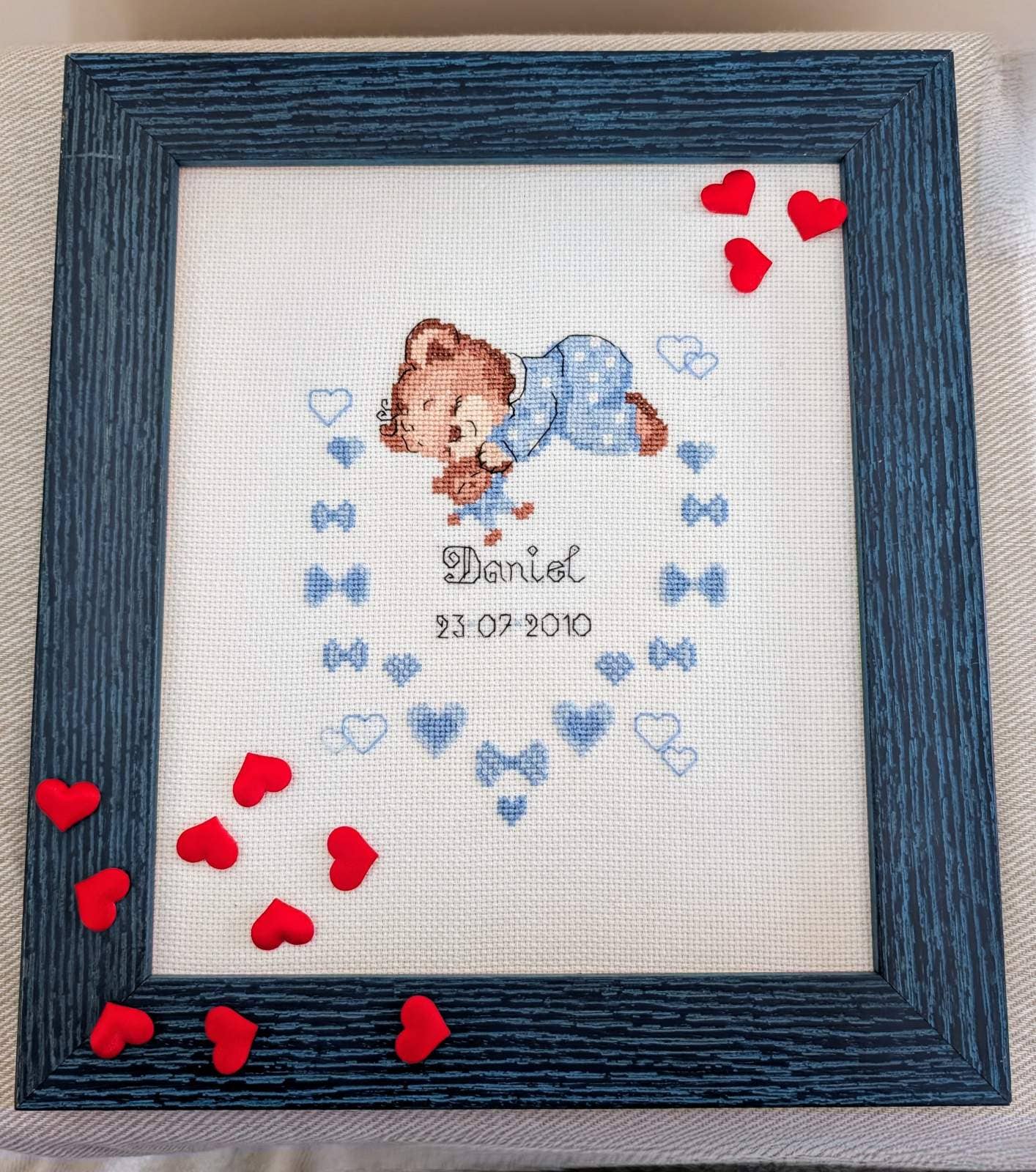 Broderisett inneholder : mønster, Aida stoff 14 ct, "Anchor" mouline garn, nål og instruksjoner.