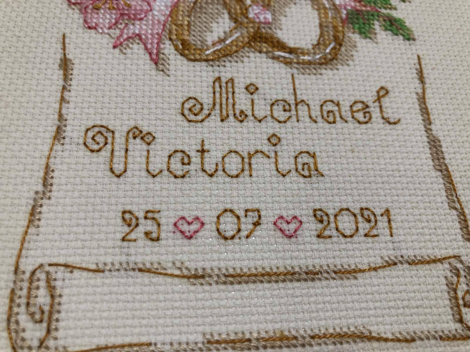 Broderes i utregnede korssting 7.2 ruter / cm med "Anchor" moulinegarn på Aidavev 18 ct.