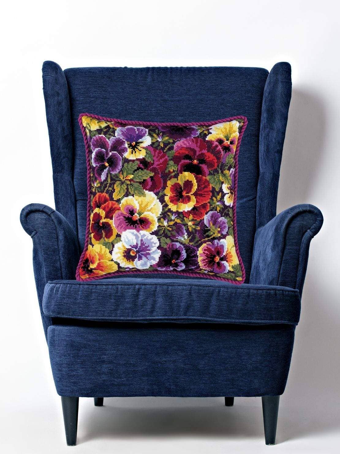 Broderisett inneholder : mønster, Aida stoff 10 ct, ull/akryl garn, nål og instruksjoner.