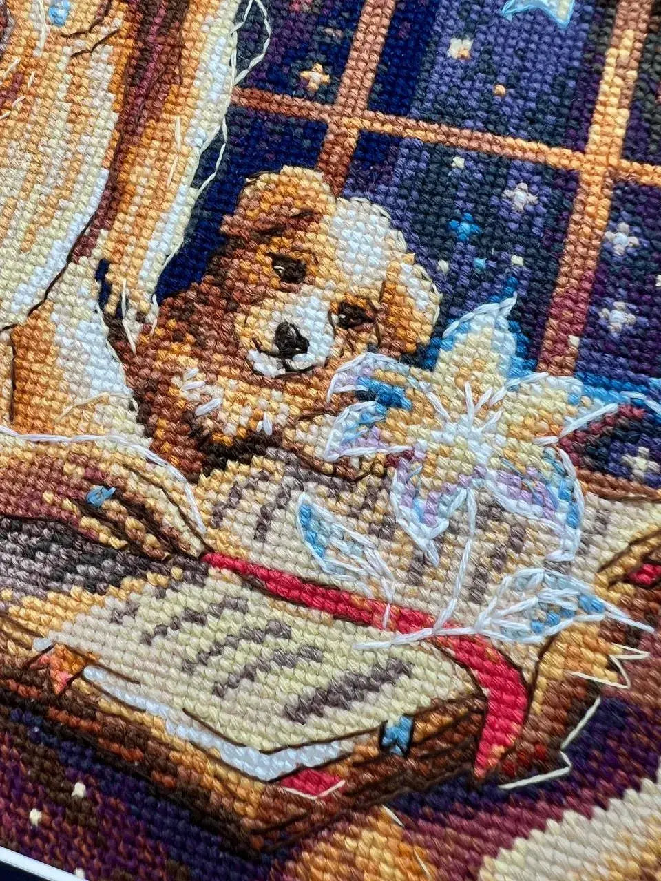 Broderisett inneholder : mønster, Aida stoff 14 ct, "Anchor" mouline garn, nål og instruksjoner.