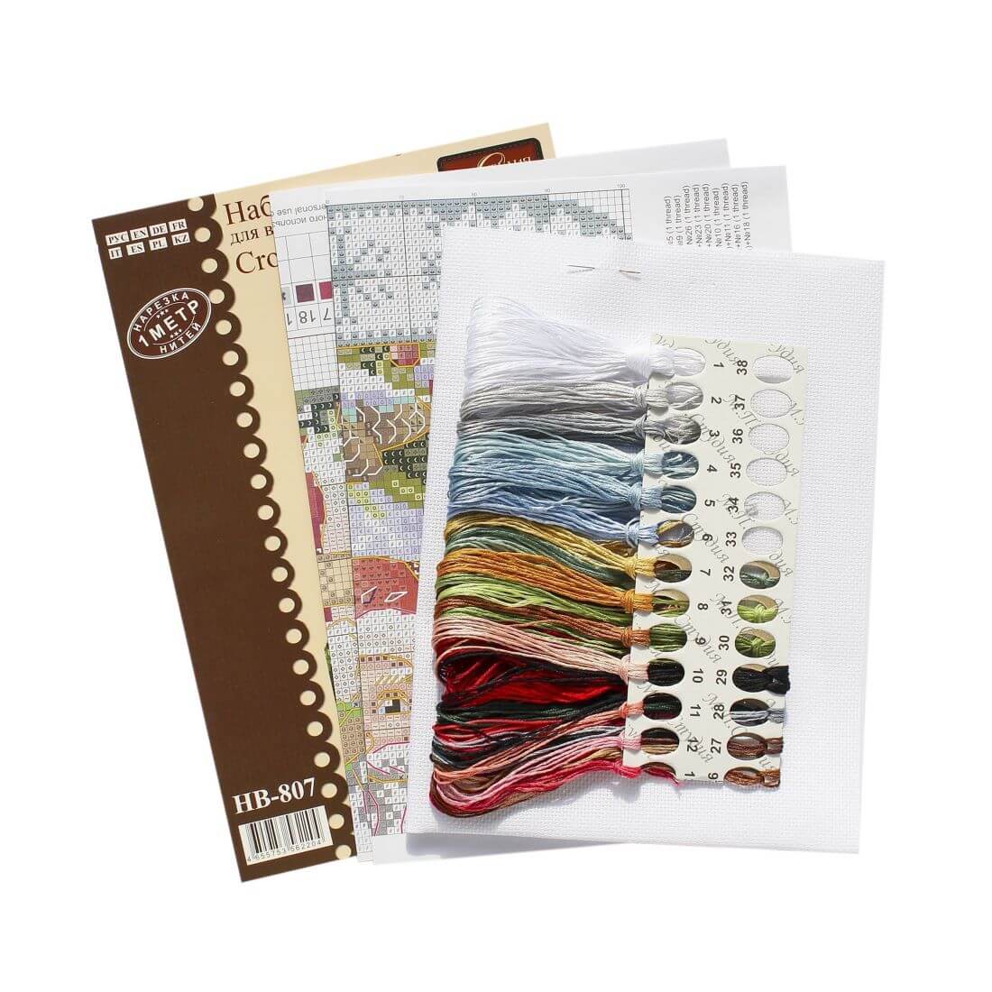 Broderisett inneholder: mønster, Aida 16 ct. stoff, mouline garn, nål og instruksjoner.