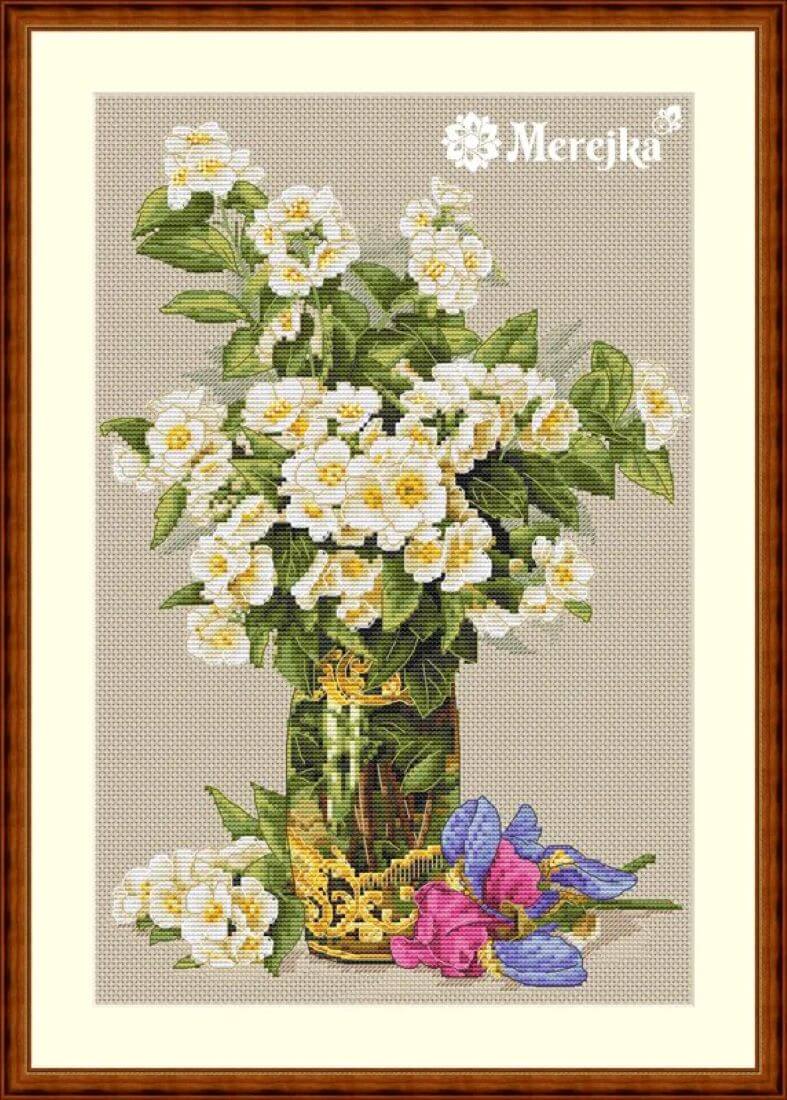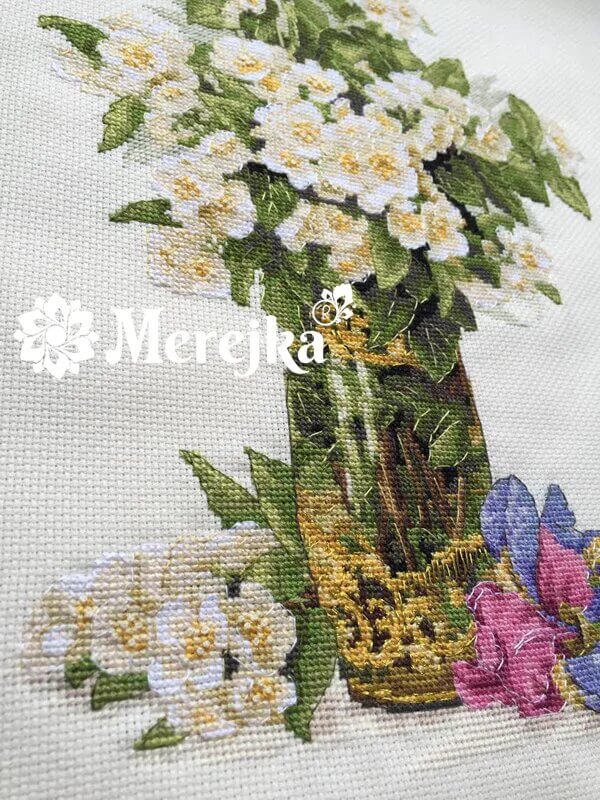 Broderisett fra "Merejka" inneholder materialer av høy kvalitet : DMC mouline garn, JohnJames nåler og Zweigart broderistoff.