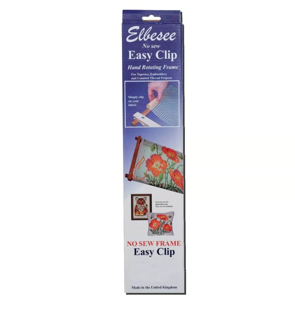 Elbesee EASY CLIP broderiramme lar deg stramme stoffet uten at du trenger ekstra sying. Du ganske enkelt fester stoffet til stolpene med klips som er inkludert i settet.