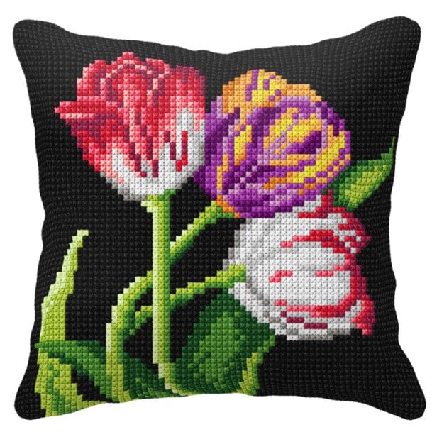 Broderes i korssting med chunky akrylgarn på påtegnet stramei