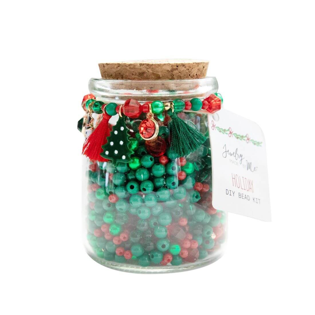 Settet inneholder: Glasskrukke med 100 g + perler og elastisk snor.