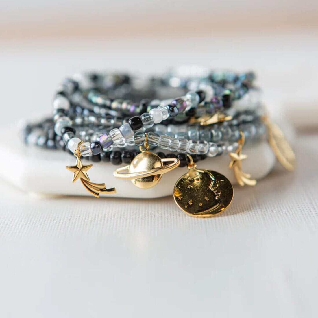 Settet inneholder alt du trenger for å lage opptil 6 stilfulle armbånd, dekorert med 12K gullbelagte anheng som gir smykkene et luksuriøst preg.