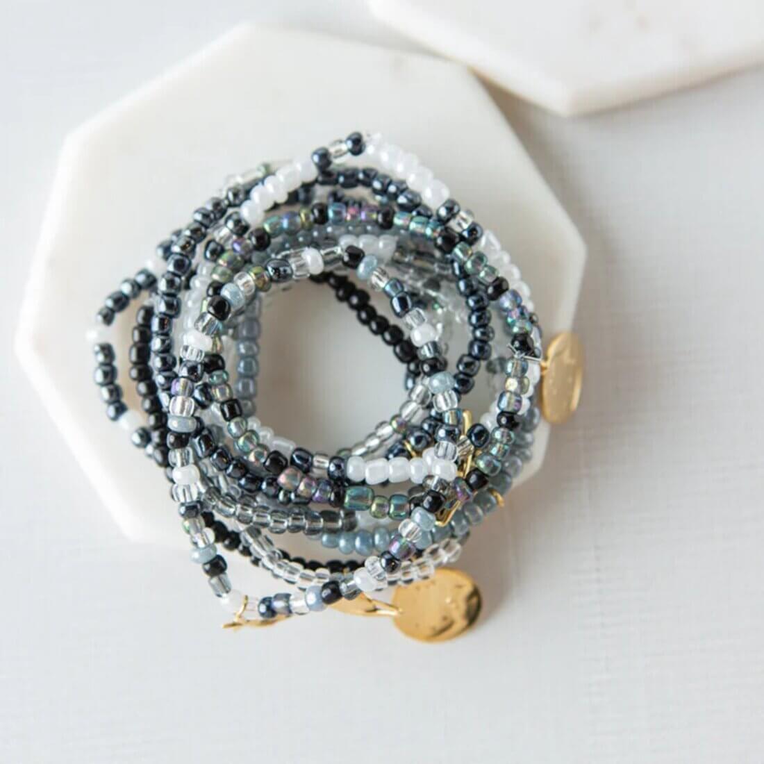 Settet inneholder:  Sead Beads i 8 forskjellige farger, organizer eske, strekksnor og 6 gullbelagte anheng.