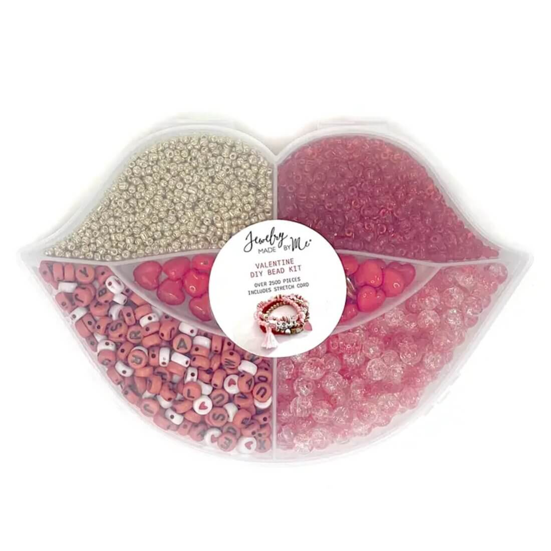 Et morsomt og fargerikt perlesett pakket i en unik eske formet som lepper – perfekt som gave eller til egen kreativ glede !