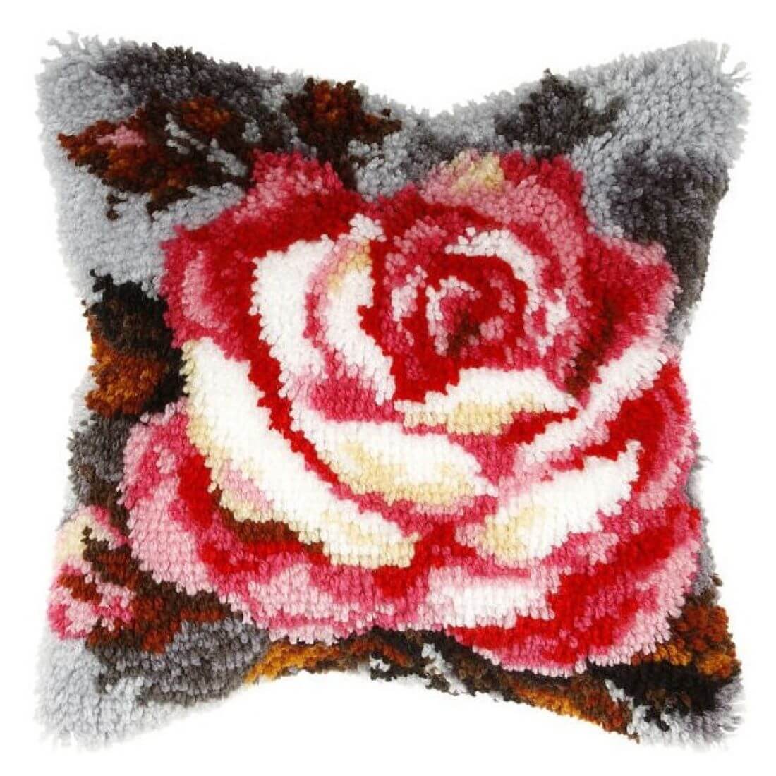 Ryepute sett inneholder: mønster, påtegnet strameistoff, ferdigklippet akrylgarn, ryekrok og instruksjoner.